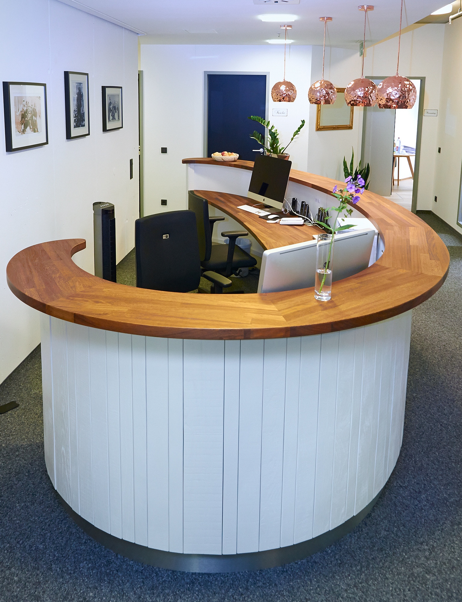 Keilgezinktes Kambala massiv geölt, Sägerauhe Fichtenbretter geschliffen und lackiert