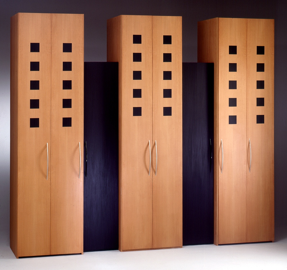 Schön ordentlich aufgereiht stehen die Buche furnierten Kleiderschränke mit durchgefärbten Tulpenbaum-Intarsien. Da müssen Sie nur noch beim morgentlichen Abschreiten die Klamotten-Parade abnehmen...