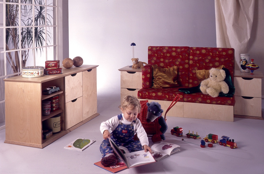 Kinder, Krams und Kuddelmuddel: Diese Kinderzimmereinrichtung aus Birkenmultiplex ist strapazierfähig und hat Platz für Teddy und Tinnef.